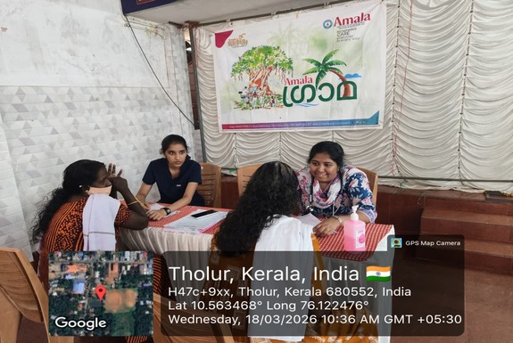 അമലഗ്രാമ പദ്ധതിയുടെ ഭാഗമായി തോളൂർ ഗ്രാമപഞ്ചായത്തിലെ രാജീവ്ഗാന്ധി സാംസ്കാരിക നിലയത്തിൽ വെച്ച് 18-03-26 ബുധനാഴ്ച രാവിലെ 10:00 മണി മുതൽ തൊഴിലുറപ്പ് സ്ത്രീകൾക്കായി "ബ്രെസ്റ്റ് കാൻസർ സ്ക്രീനിംങ്ങും ഫ്രീ പാപ്സ്മിയർ ടെസ്റ്റ് ക്യാമ്പും നടത്തി.അമലഇൻസ്റ്റിറ്റ്യൂട്ട് ഓഫ് മെഡിക്കൽ സയൻസസ് ഗൈനക്കോളജി വിഭാഗം ഡോ സ്മൃതി നേതൃത്വം നൽകി.