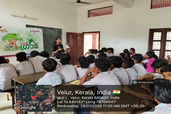 അമല ഗ്രാമ പദ്ധതിയുടെ ഭാഗമായി വേലൂർ പഞ്ചായത്തിലുള്ള G.R.S.R.V.H.S സ്കൂളിലെ ഹൈസ്കൂൾ വിദ്യാർത്ഥികൾക്കായി 28/1/2026 ബുധൻ രാവിലെ 10:30 ക്ക് സ്കൂൾ ഹാളിൽ വച്ച് " FIRST AID" എന്ന വിഷയത്തെ ആസ്പദമാക്കി ബോധവൽക്കരണ ക്ലാസ്സ് നടത്തി. അമല ഇൻസ്റ്റിറ്റ്യൂട്ട് ഓഫ് മെഡിക്കൽ സയൻസസ് കമ്മ്യൂണിറ്റി മെഡിസിൻ വിഭാഗം ഡോക്ടർമാരായ ഡോ. ശ്രീദേവ്, ഡോ. ആൻഡ്രിക എന്നിവർ ക്ലാസ്സ് എടു