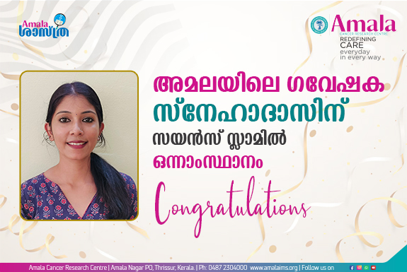 അമലയിലെ ഗവേഷക സ്നേഹദാസിന് സയന്സ് സ്ലാമില് ഒന്നാം സ്ഥാനം