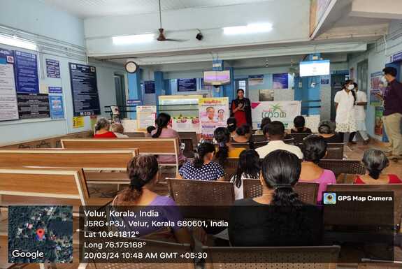 അമല ഗ്രാമ പദ്ധതിയുടെ ഭാഗമായി 20/3/2024 ബുധനാഴ്ച്ച രാവിലെ 10: 30ന് വേലൂർ പഞ്ചായത്തിലെ PHC യിൽ വച്ച് "March 21 Down syndrome Day " യുടെ ഭാഗമായി ബോധവൽക്കരണ ക്ലാസ്സ് നടത്തി. കമ്മ്യൂണിറ്റി മെഡിസിൻ വിഭാഗം ഡോക്ടർ സൂസൻ ക്ലാസ്സ് എടുത്തു.