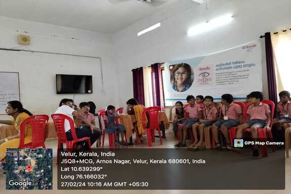 അമല ഗ്രാമ പദ്ധതിയുടെ ഭാഗമായുള്ള അമല നയന പദ്ധതിയുടെ ഭാഗമായി വേലൂർ ഗ്രാമപഞ്ചായത്തിലെ St. Xavier's യൂ.പി സ്കൂൾ 1,2 ക്ലാസ്സുകളിലെ വിദ്യാർത്ഥികൾക്കായി 27/2/2024 ചൊവ്വാഴ്ച്ച രാവിലെ 10.00 ന്. മൂന്നാംഘട്ട നേത്ര പരിശോധന ക്യാമ്പ് നടത്തി
