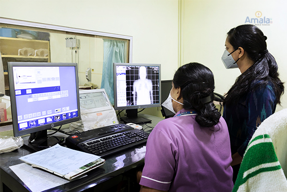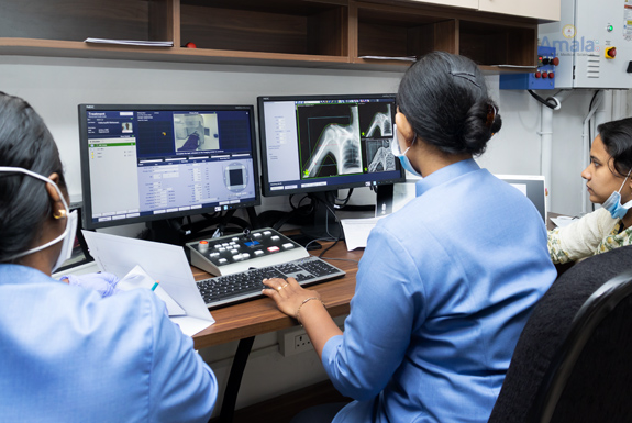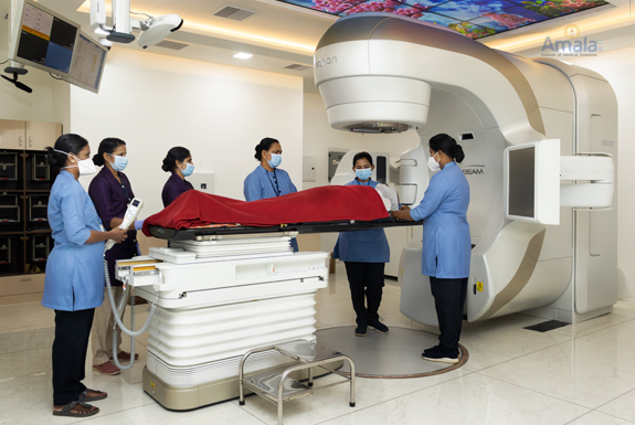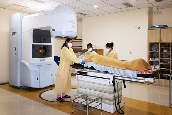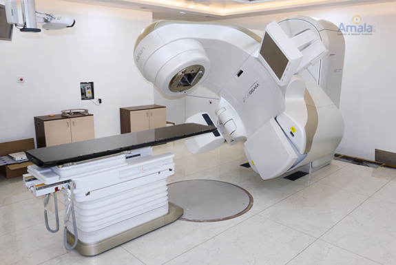 Overview The Department of Oncology at Amala Hospital started in 1978is one of the first cancer centres in Kerala. The Radiation Oncology department initiated its work with 3 cobalt teletherapy machines and later upgraded with 2 linear accelerators (UNIQUE in 2013 and TRUBEAM in 2023) and brachytherapy. The programs offered by the department are of international standards with advanced Clinical Radiation Therapy techniques and treatment. The department comprises of a dedicated team of doctors, highly trained and qualified medical physicists, radiation technologists, well trained oncology nurses, and supportive care team members. The department has been accredited by NABH, and it strives towards ensuring a patient-centred, cost-effective and high quality of comprehensive radiation treatment.